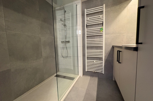 Cet appartement prêt à emménager a été récemment rénové de A à Z, avec une attention particulière portée à la qualité et au confort. L’ensemble de l’appartement est équipé de placards sur mesure, garantissant un espace de rangement optimal.