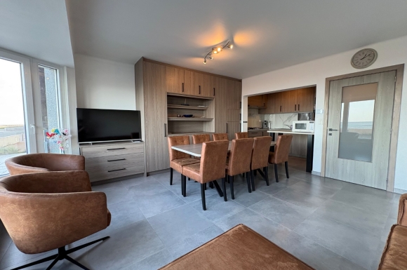 **À vendre, dans un emplacement exceptionnel sur la digue à Coxyde : appartement entièrement rénové de 3 chambres avec garage dans l’immeuble.**